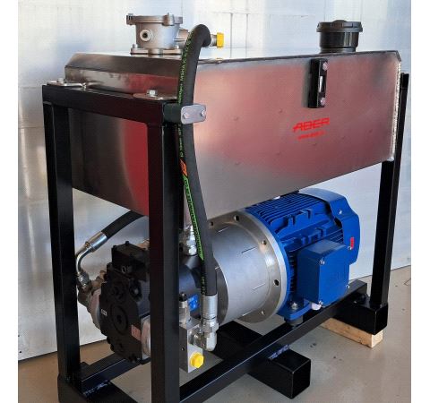 Hydraulikkaggregat med følgende hoved data: 32 ccm eller ca 46 l/min ved 50 Hz (maks 55 bar) El.motor 5,5KW 230/400 VAC 50 Hz Maks. arbeidstrykk 300 bar. (maks 10 liter/min) Tank 80 Liter rustfri.