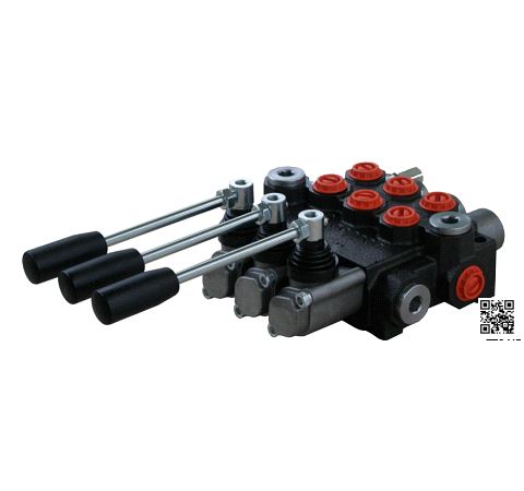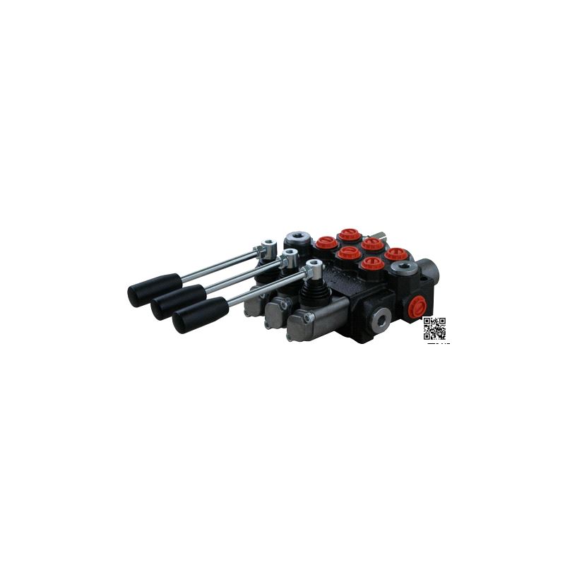 3 seksjon monoblokk ventil kryss parallel AB sengt midtstilling. nominell volumstrøm 40L/min maks trykk 250 Bar. (300bar i Aog B port)